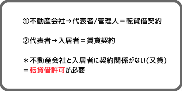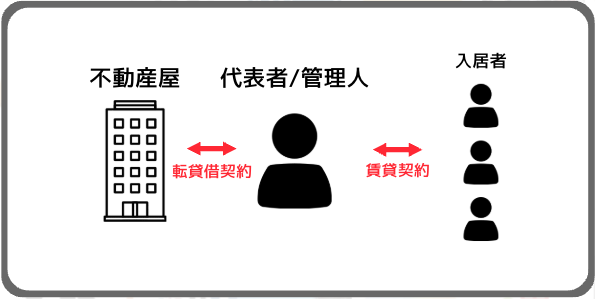 しかし、シェアハウスの場合は大家さんから借りた物件を管理人が入居者さんに又貸しすることになり、これを「転貸借」と呼びます。