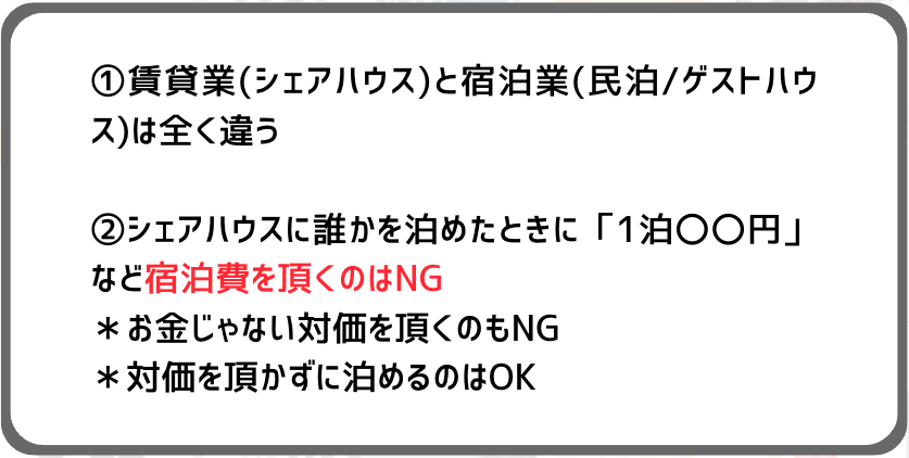 賃貸と宿泊の違い(シェアハウス≠ゲストハウス)