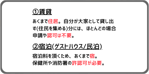 続いて、賃貸業と宿泊業の違いについても明確に認識をしておく必要があります。