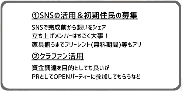 SNSの活用&初期住民の募集