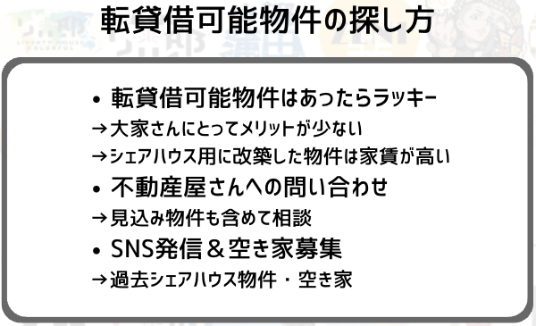 シェアハウス用(転貸借可能)物件探し