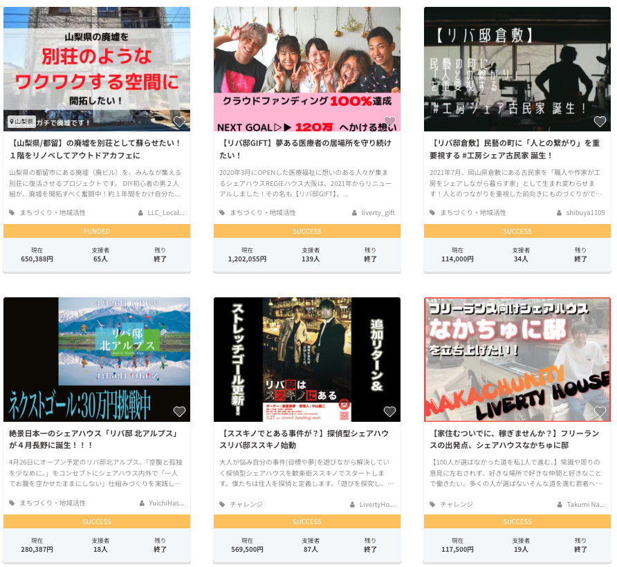 リバ邸関連で行われたプロジェクトがCAMPFIRE公式サイト内キュレーションページにまとめられているので、ぜひ参考にご覧ください。