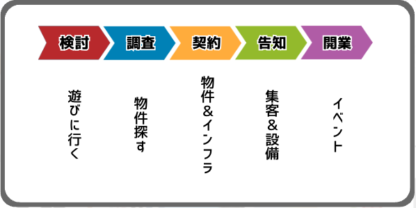 ここまでで事前認識は完了です!続いて物件探しから実際のOPENまでの流れについて。