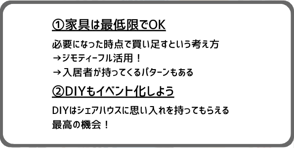 1人でも多く「身内」としてシェアハウスに愛着を持ってくれるメンバーを集めていきましょう。