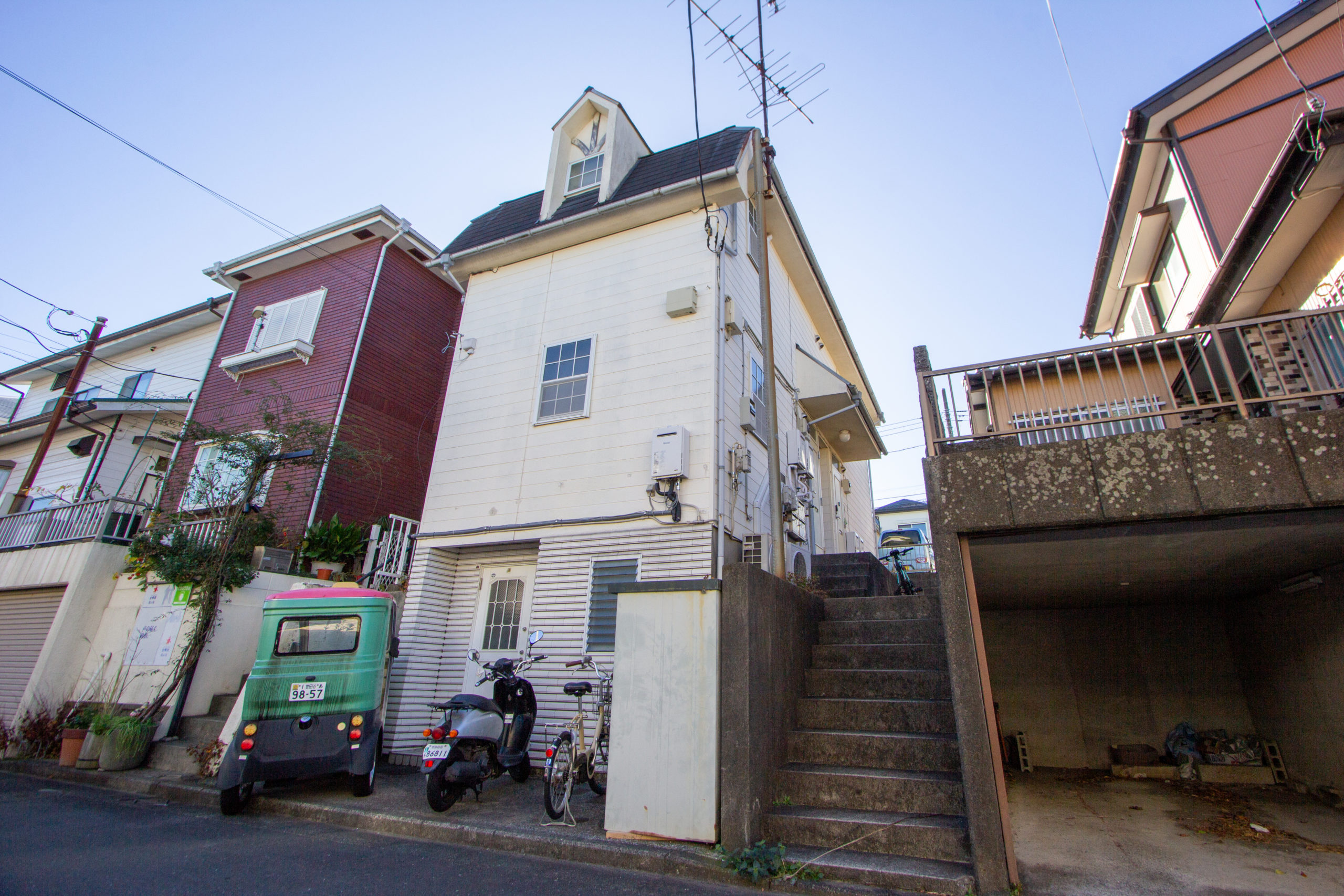 ホワイトキャビン高舟はもとは学生街である金沢文庫を舞台に、地上階に塾(公文式)を構える塾併設のアパートでした。